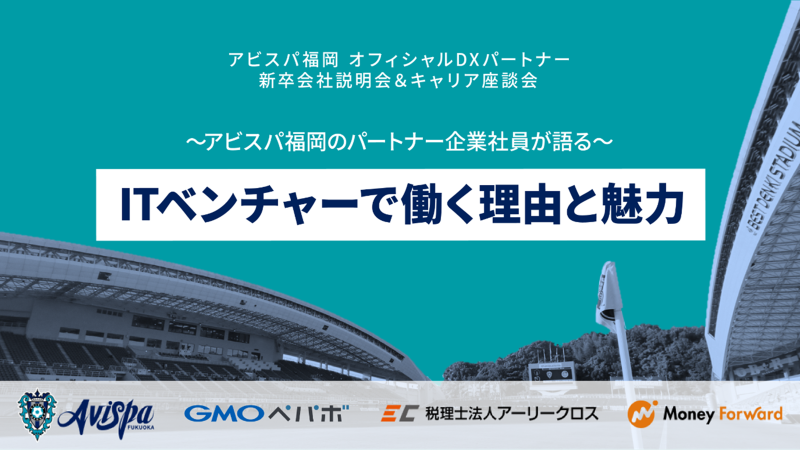 新卒採用イベント『~アビスパ福岡のパートナー企業社員が語る~ITベンチャーで働く理由と魅力』にて会社説明会&キャリア座談会の実施