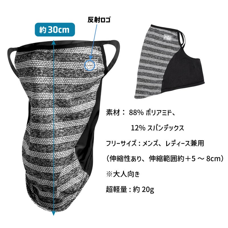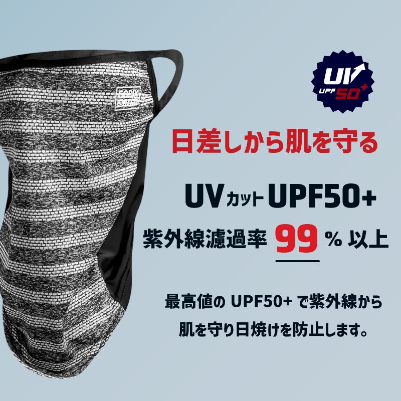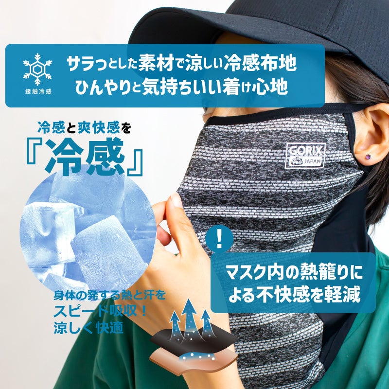 接触冷感で涼しく、夏のスポーツ時や屋外作業の時に最適なマスクです。