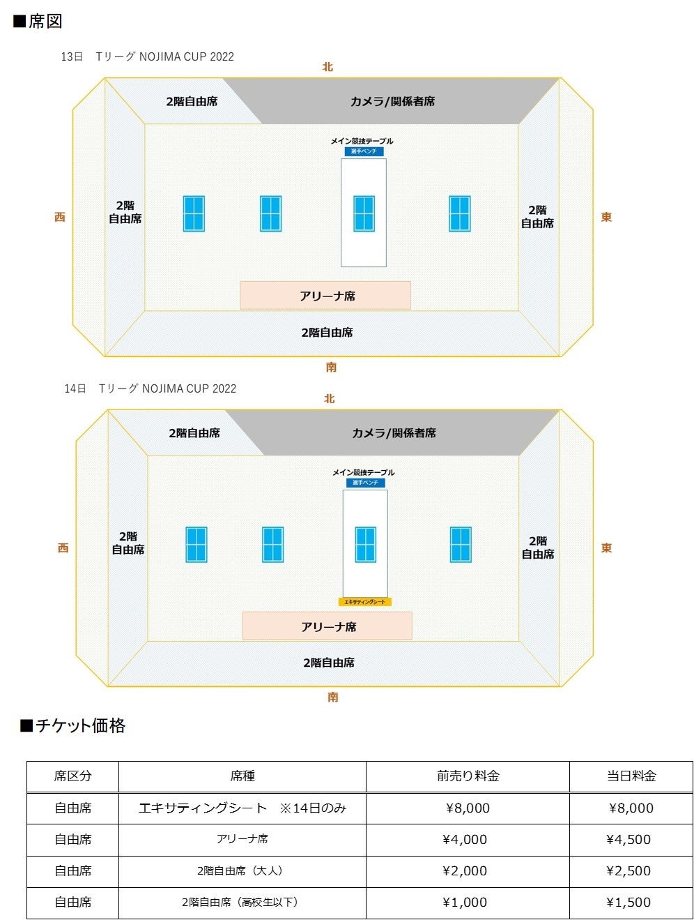 ※エキサイトシートは14日のみの販売となり、決勝戦の2試合(メインコート)の席になります。その他の試合は、2階自由席での観覧も可能となります。