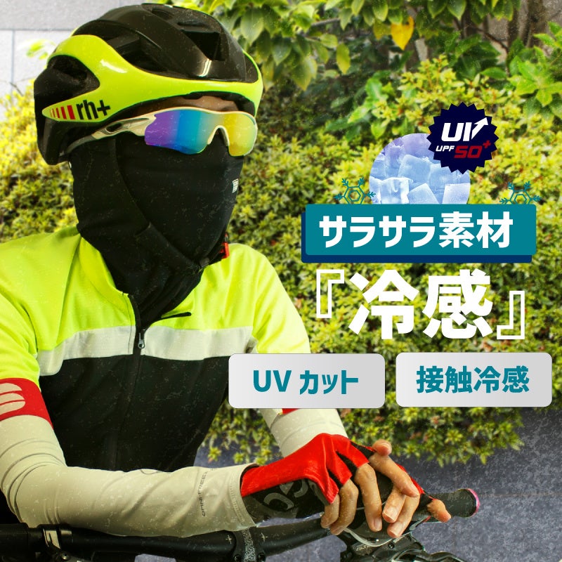 UVカットUPF50+で自転車などの長時間外で活動する時の紫外線による日焼け対策に最適です。