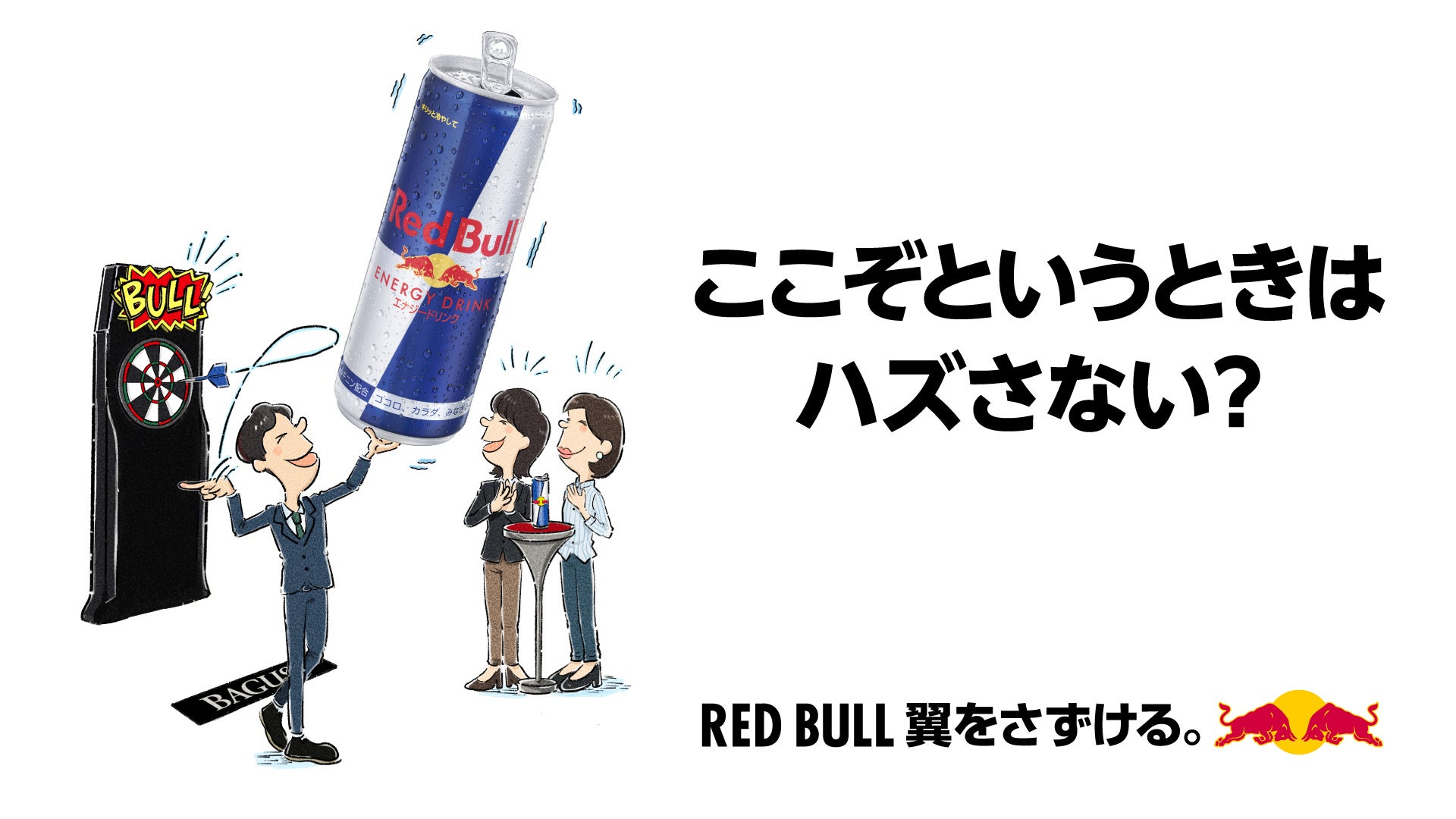 ダーツをプレイした後はレッドブルドリンクを飲んで「ここぞというときはハズさない?」パワーをチャージ!