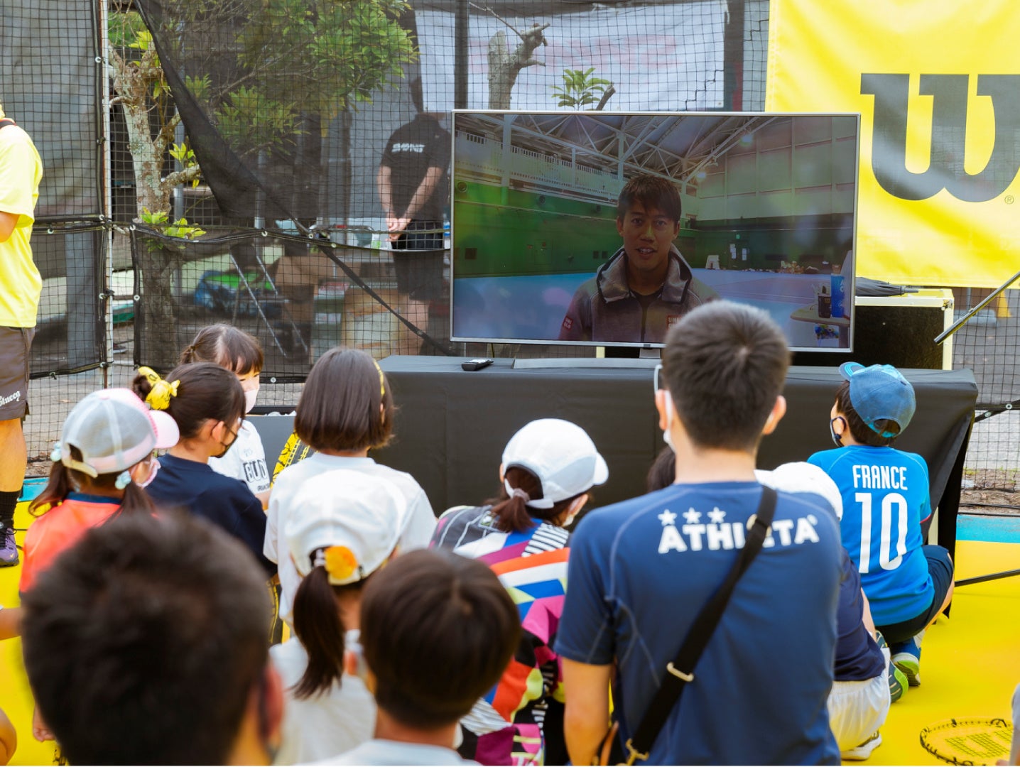 イベント内では、錦織圭選手からのメッセージ動画が流れ、モニター越しに映る錦織圭選手からの呼びかけに子供たちは自然と笑顔になり、拍手で喜びを表現していました。