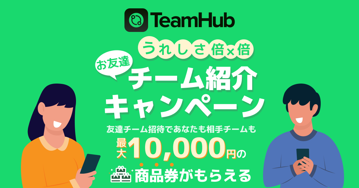 本キャンペーンを通じて、TeamHubのことを知っていただき、当アプリがスポーツチームが抱える悩みを解決する一助となること、さらにはスポーツの輪が広がっていくことを心から願っております。