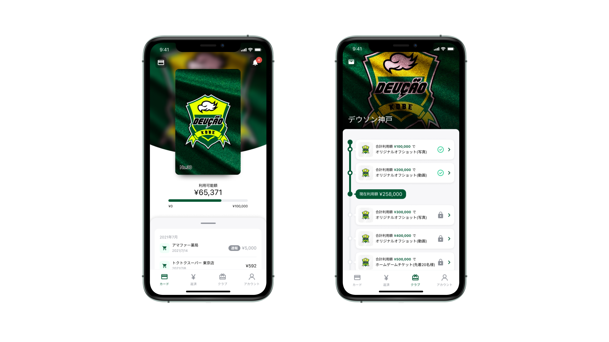 「デウソン神戸」クラブユーザー様は、普段のお買い物などでNudgeカードをご利用いただくだけで、デウソン神戸の応援ができます。さらに、Nudgeカードのご利用金額に応じて、限定のオフショットや試合チケット等、チームの限定特典がもらえます。