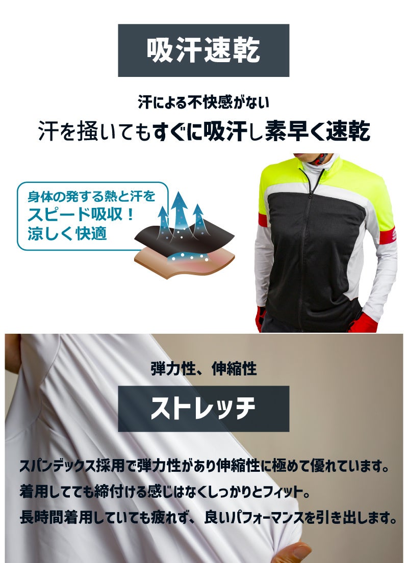 着用方法はネックカバーを着用してからサイクルジャージや半袖シャツ、ポロシャツを着ます。