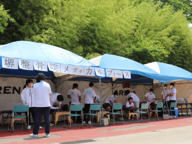 堺整骨院グループは、国家資格を保持した柔道整復師・鍼灸師が、地域のスポーツ大会に救護トレーナーとして積極的に参加し、選手のサポートを行います。