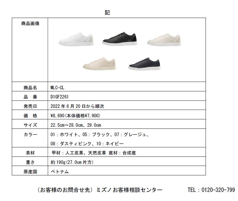ミズノは、高反発ソール素材『MIZUNO ENERZY』※1を搭載するなどして一般的なコート系スニーカーと比較し※2約60%軽量化した、「MLC-CL」をミズノ公式オンライン、全国のミズノ品取扱店で6月20日から順次販売します。