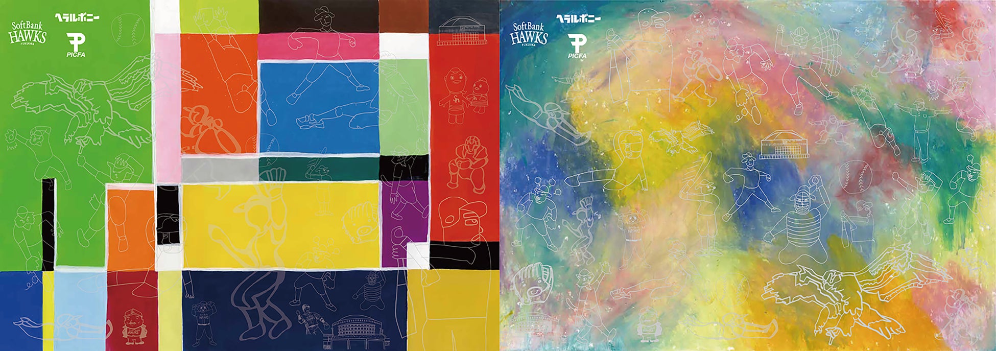 ホークス「ファイト !九州」の取り組みの一つであるアートの力を借りて、たくさんの笑顔を生み出すために発足された「スマイルアートプロジェクト」にヘラルボニーが共鳴し、ヘラルボニーと契約作家であり、佐賀県に拠点をおくPICFAに在籍する10名以上の作家が本プロジェクトに参加しました。