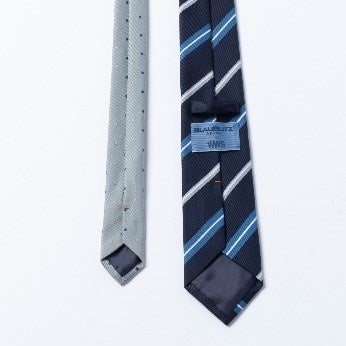 WWS初となる2社の特別タグ入りオリジナルネクタイ。オフィシャルスーツと同色のネイビー・ブルー・グレー・白の4色を使用。