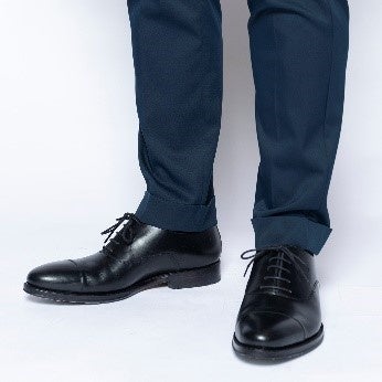 裾はダブル仕上げでカジュアルに。革靴にもスニーカーにも合わせやすい絶妙なアンクル丈で足元の軽快さをアピール。