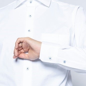 ジャケットとパンツには、独自開発の新素材「ultimex/アルティメックス」を使用し、365日洗濯機で丸洗いでき、しわになりにくく、3・4時間で乾く驚きの機能性を実現。同商品は、パイピングや胸ポケットチーフにチームカラーであるブルーを取り入れ、ジャケット内側にはチームロゴをプリント。パンツは、革靴にもスニーカーにも合わせやすいダブルのアンクル丈で、足元の軽快さをアピールしました。ワイシャツには360°ストレッチ・吸水速乾・UVカット・しわになりにくい高機能性を備える自社開発素材「ultimex for SHIRT」を使用し、ボタンとボタン糸にブルーのアクセントを加えています。WWS初となるネクタイには2社の特別タグを入れ、オフィシャルスーツと同色のネイビー・ブルー・グレー・白の4色を使用し、統一感を持たせました。
