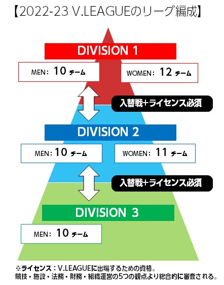 2022-23 V.LEAGUEの開催要項およびDIVISION1 MEN & WOMEN (V1男子・V1女子)とDIVISION2 WOMEN(V2女子)の日程、会場、対戦カードを発表します。