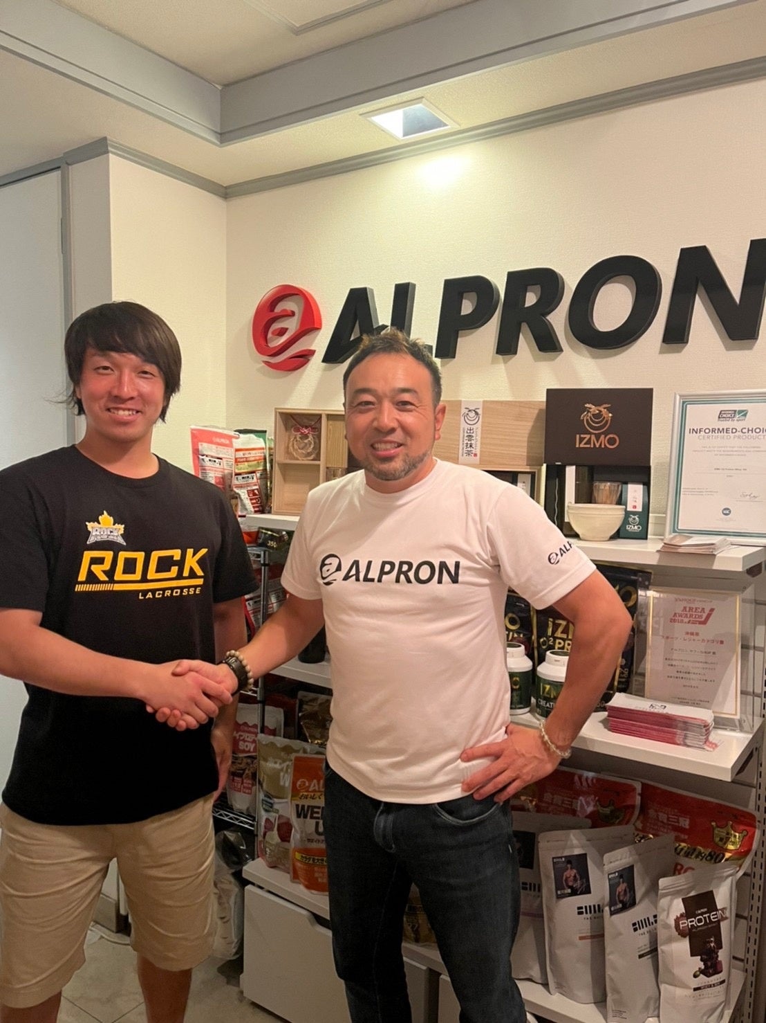 「 Active Life Navigator 」を掲げるプロテイン・スポーツ栄養食品メーカーの株式会社アルプロン(本店:島根県雲南市、 代表取締役:坂本雅俊 https://alpron.co.jp/)はNLApro Marauder Lacrosse Club 中村弘一選手と学生ラクロス普及の為、売上の一部を学生ラクロス北米遠征プログラムに寄付させていただきます。