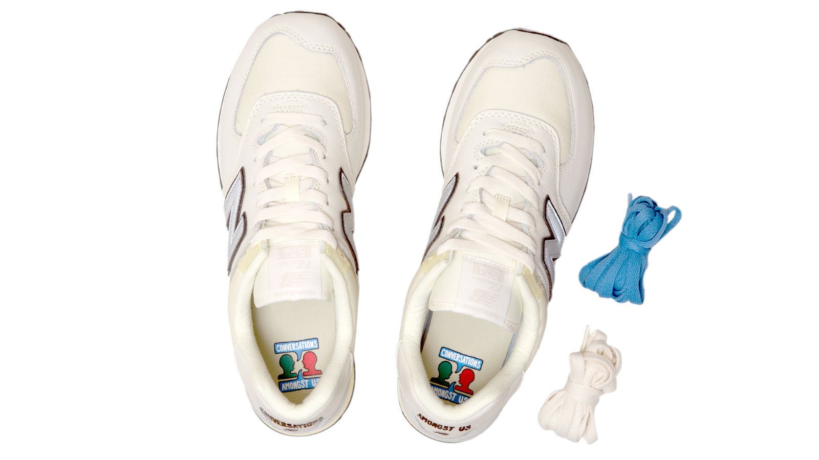 今回の「U574」とキッズ「PC574」はブラックコミュニティで定番であるホワイトスニーカーからインスパイアされています。イエローのリップストップは、プラス思考のマインドやエネルギー、幸福感を表現し、574をブラッシュアップしています。アッパーのヒール部とインソールにはテーマの「Conversations Amongst Us」を施したスペシャルな1足です。