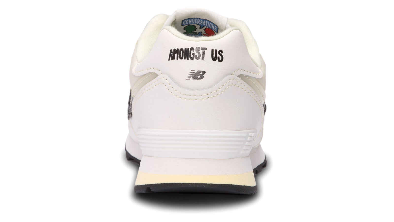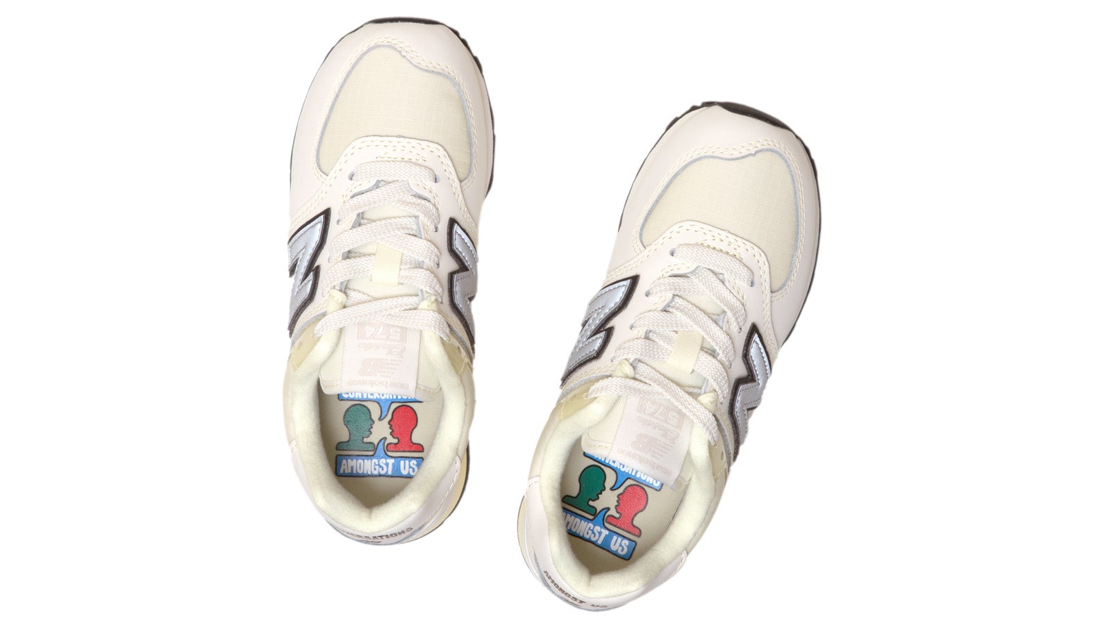今回の「U574」とキッズ「PC574」はブラックコミュニティで定番であるホワイトスニーカーからインスパイアされています。イエローのリップストップは、プラス思考のマインドやエネルギー、幸福感を表現し、574をブラッシュアップしています。アッパーのヒール部とインソールにはテーマの「Conversations Amongst Us」を施したスペシャルな1足です。