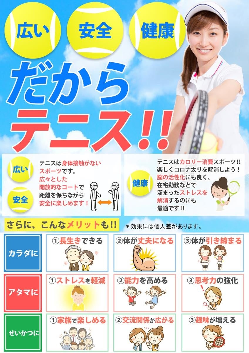 様々な健康効果が期待出来、コロナ禍でも楽しめるスポーツ、「今だからテニス!」です。