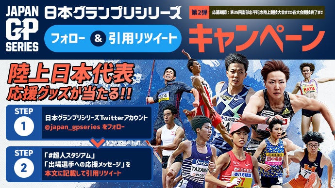 キャンペーン第2弾では6月25日・26日に開催される「布勢スプリント2022」、7月10日(日)に開催される「第35回南部忠平記念陸上競技大会」の2大会で出場選手へ応援メッセージを大募集!