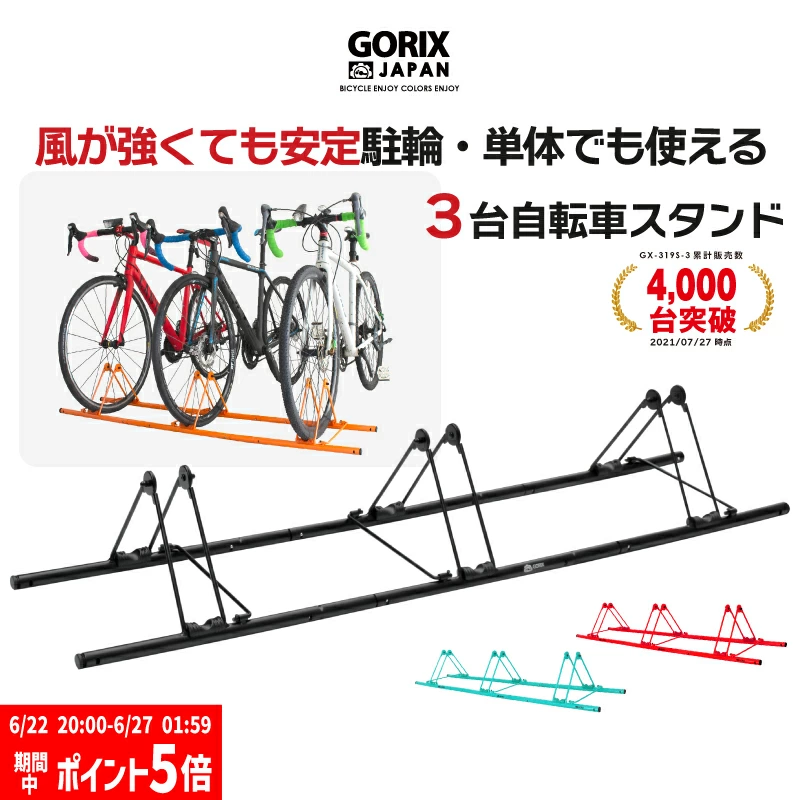 12~29インチのタイヤ幅6cmまで対応の3台自転車スタンド GX-319S-3