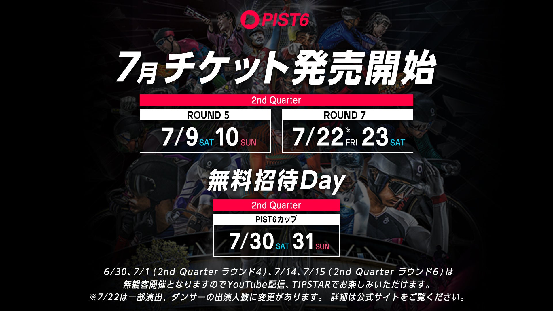 千葉市主催の自転車トラックトーナメント「PIST6 Championship」では、7月に開催する以下対象レースのチケットを6月20日(月)15:00より販売開始いたします。また、PIST6会員登録をしていただいた皆様に、7月開催レースのチケット購入時に使用できる「チケット50%OFFクーポン」をプレゼントいたします。