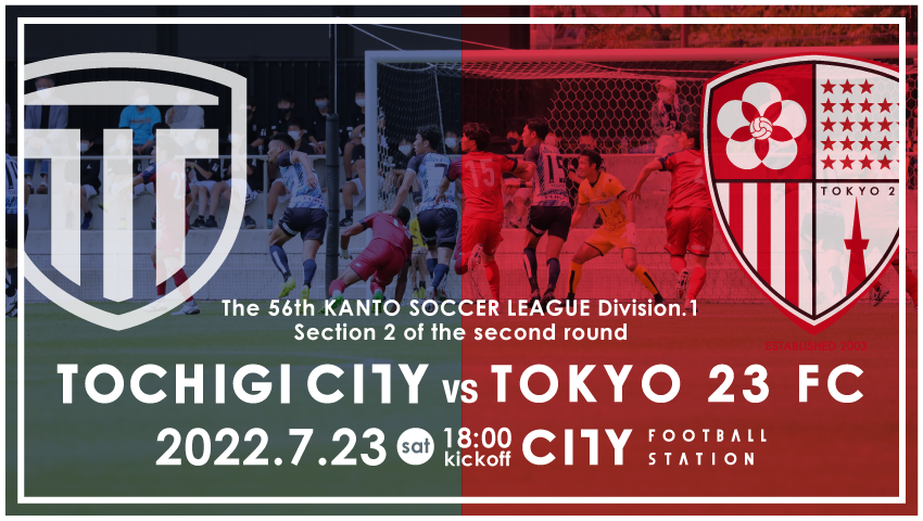 2022年7月23日(土)に開催する、第56回関東サッカーリーグ1部後期2節vs東京23FC(18:00キックオフ@CITY FOOTBALL STATION)は、ホームタウンである「栃木市民デー」として開催することが決定いたしましたので、お知らせいたします。