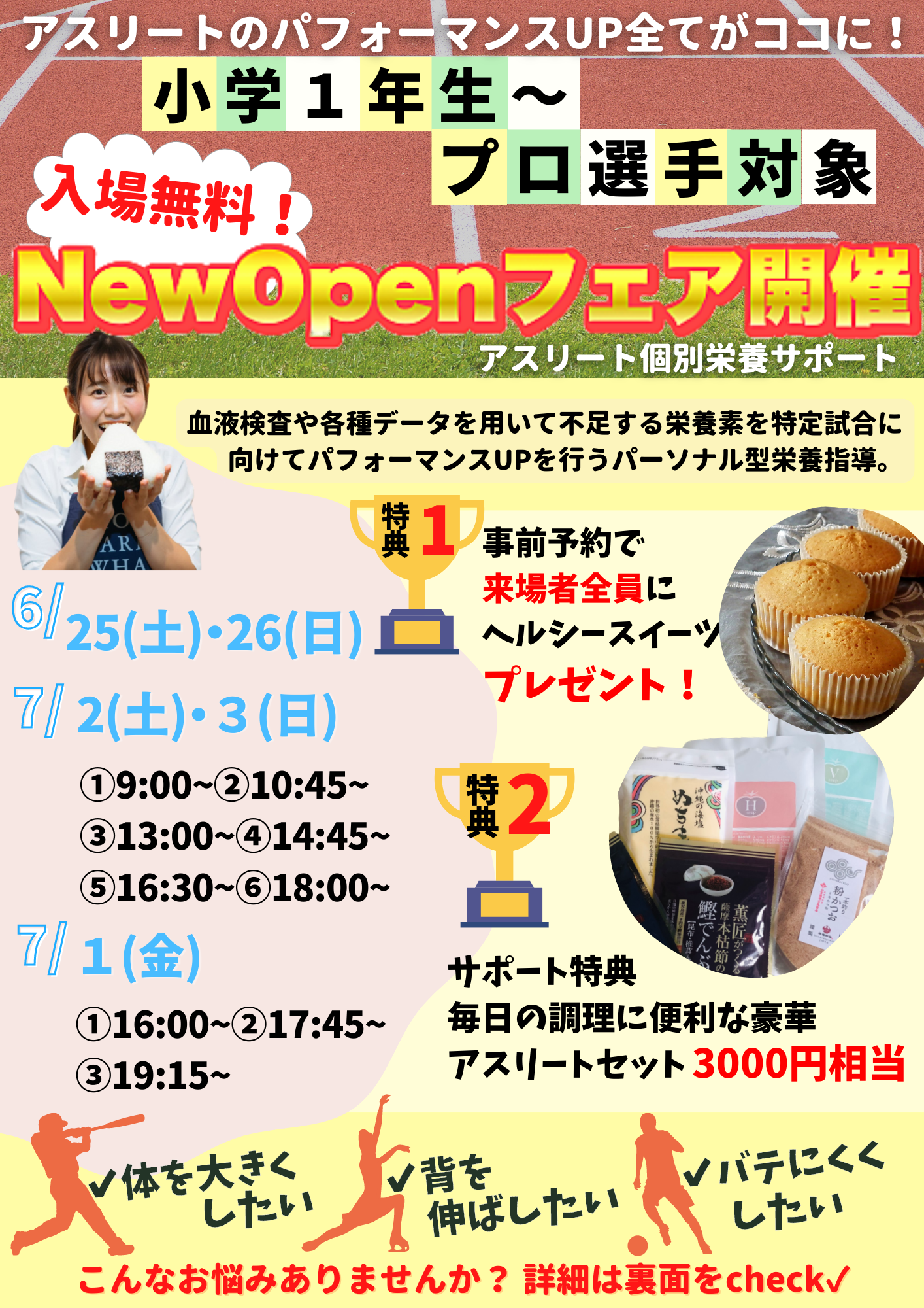 【食べたもので体は作られる】日々の食事の積み重ねが、練習の成果の後押しをします。結果を出したいアスリートへの栄養サポートをさせていただきます。ぜひ一度ご参加ください。