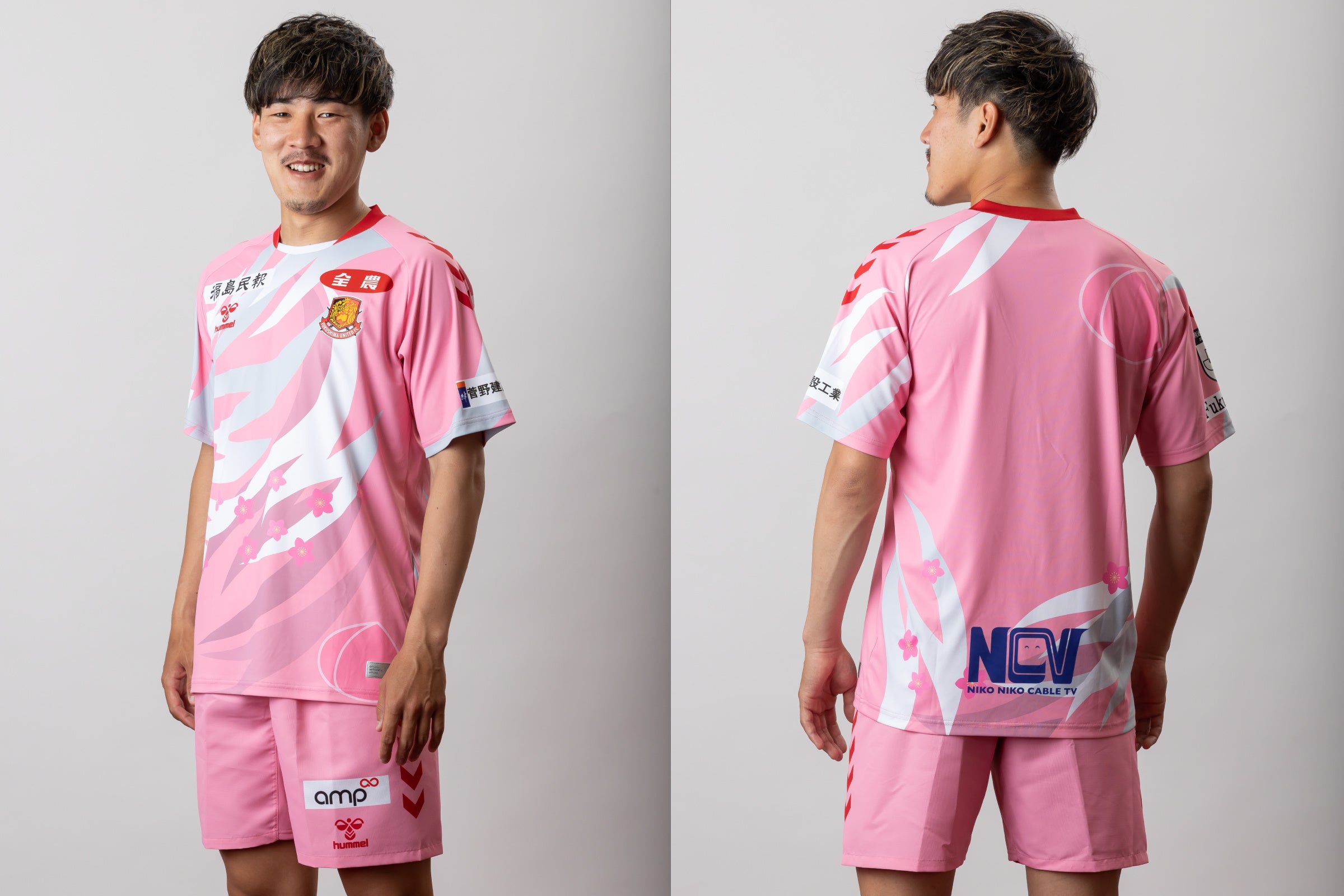 桃ユニフォームは、14節から20節までの6試合(18節を除く)で着用。ホーム2試合、アウェイ4試合で、6月26日のヴァンラーレ八戸戦から、8月13日のSC相模原戦まで着用します。雪江悠人選手は、「今年の桃ユニは『桃の花』が特徴的な爽やかなユニフォームになりました。シーズンも中盤に入ります。桃ユニ着用の期間は、ぜひこのユニフォームを着て、みんなで戦いましょう。応援よろしくお願いします」と呼びかけました。