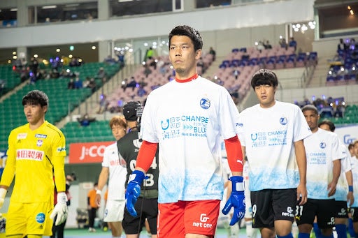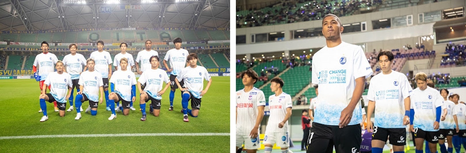 - 選手が”CHANGE FOR THE BLUE”仕様の特別オリジナルユニフォームを着用して入場