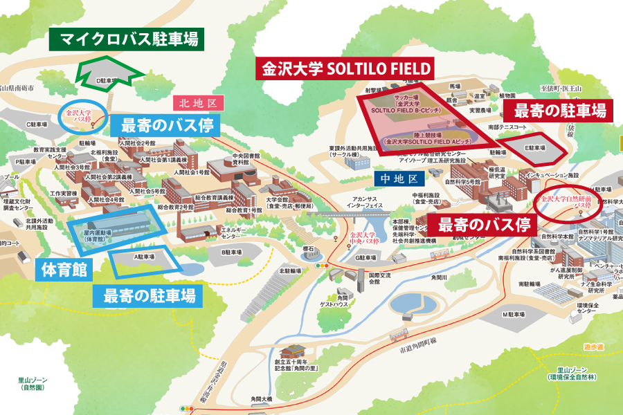 ※バス停:最寄「金沢大学自然研前」、または「金沢大学中央」「金沢大学」