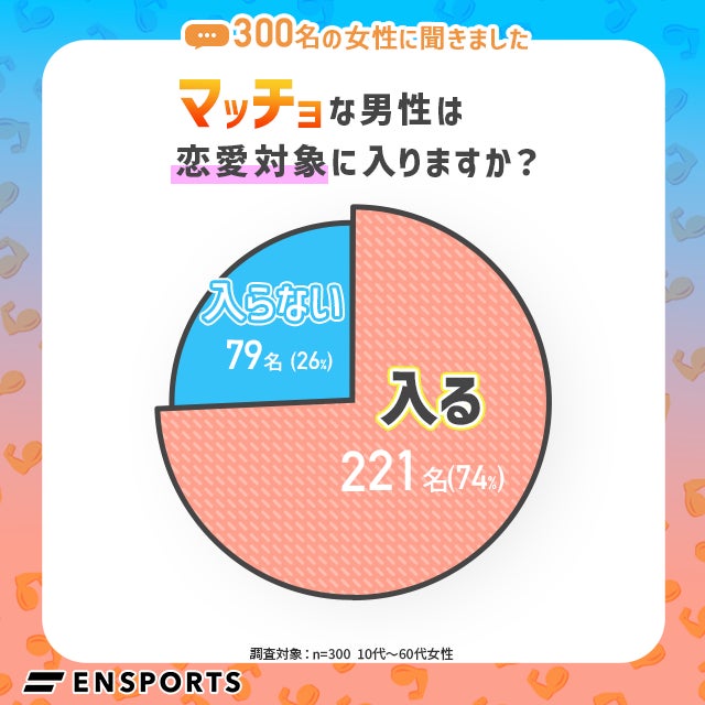 「マッチョな男性は恋愛対象に入る」と回答した女性は、全体の74%と多数派です。
