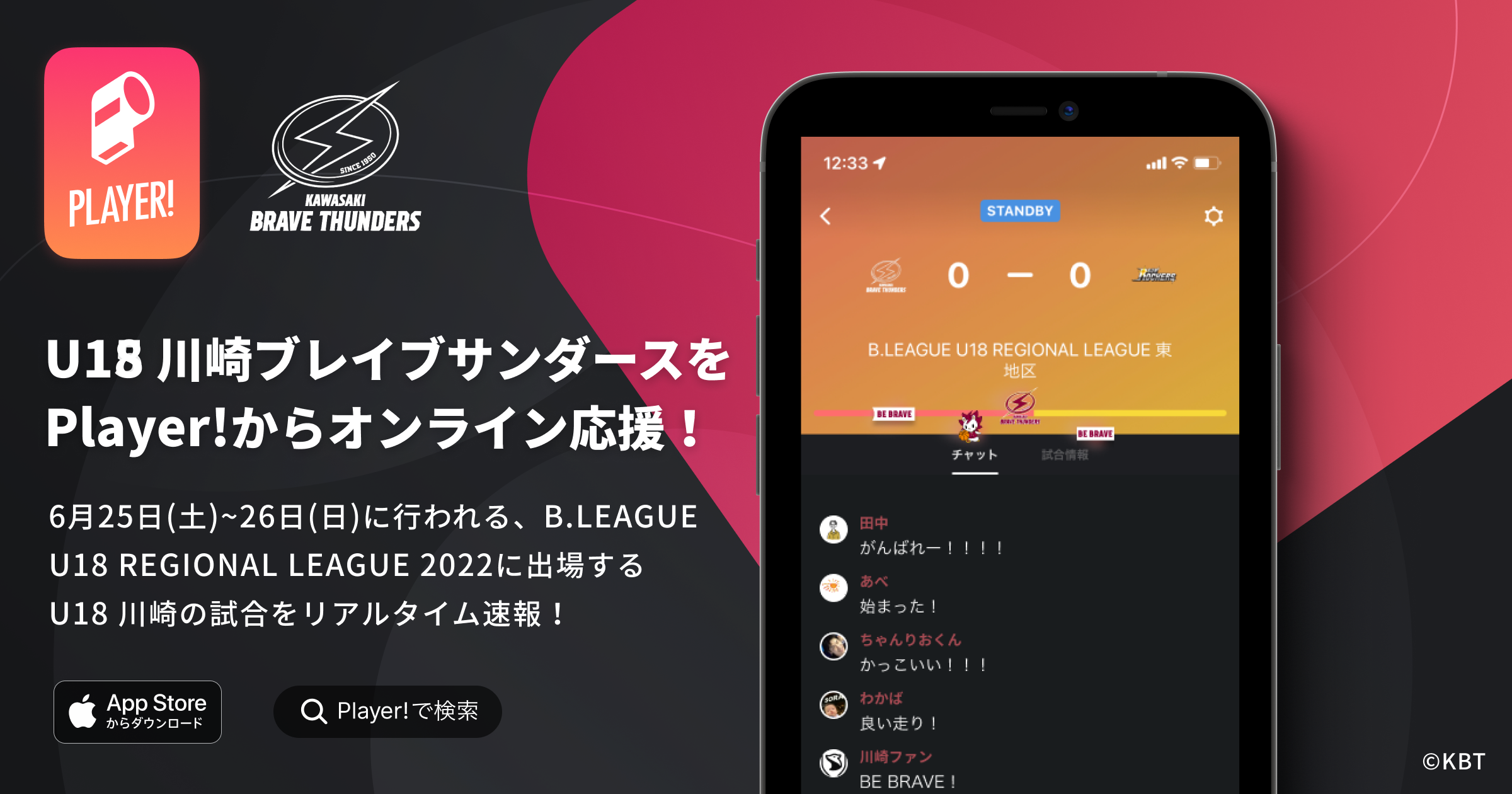 スポーツスタートアップ企業 ookami は、スポーツエンターテイメントアプリ「Player!」において、6月25~26日に行われる「B.LEAGUE U18 REGIONAL LEAGUE 2022」に出場する、U18川崎ブレイブサンダース全試合のテキスト速報を⾏います。Player!から川崎ブレイブサンダースを応援しましょう!