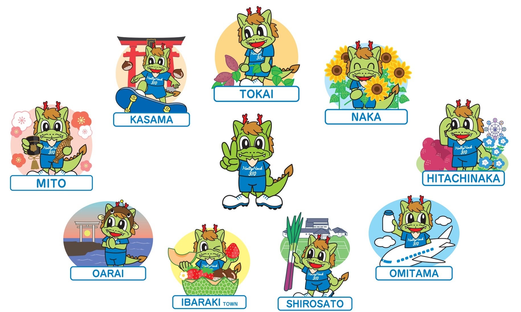 ホーリーくん新デザインの決定を受け、選手から6/11のホーリーくんの誕生日に向けたサプライズプレゼントとして、新里キャプテンの提案から、生まれた9市町村ごとのホーリーくん「ホームタウンホーリーくん」。各ホームタウンPR大使(選手)や各市町村担当者との協議をし、市町村の特色や名物を反映させることで、市町村を連想させるデザインのホーリーくんが9つ完成しました。