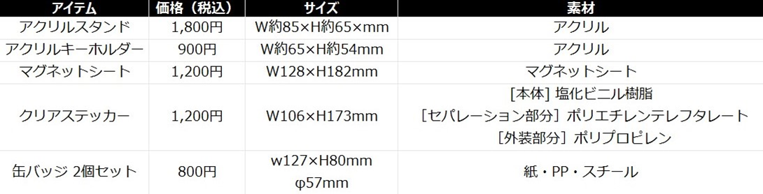 ④ アクリルキーホルダー、ステッカー、缶バッジなど