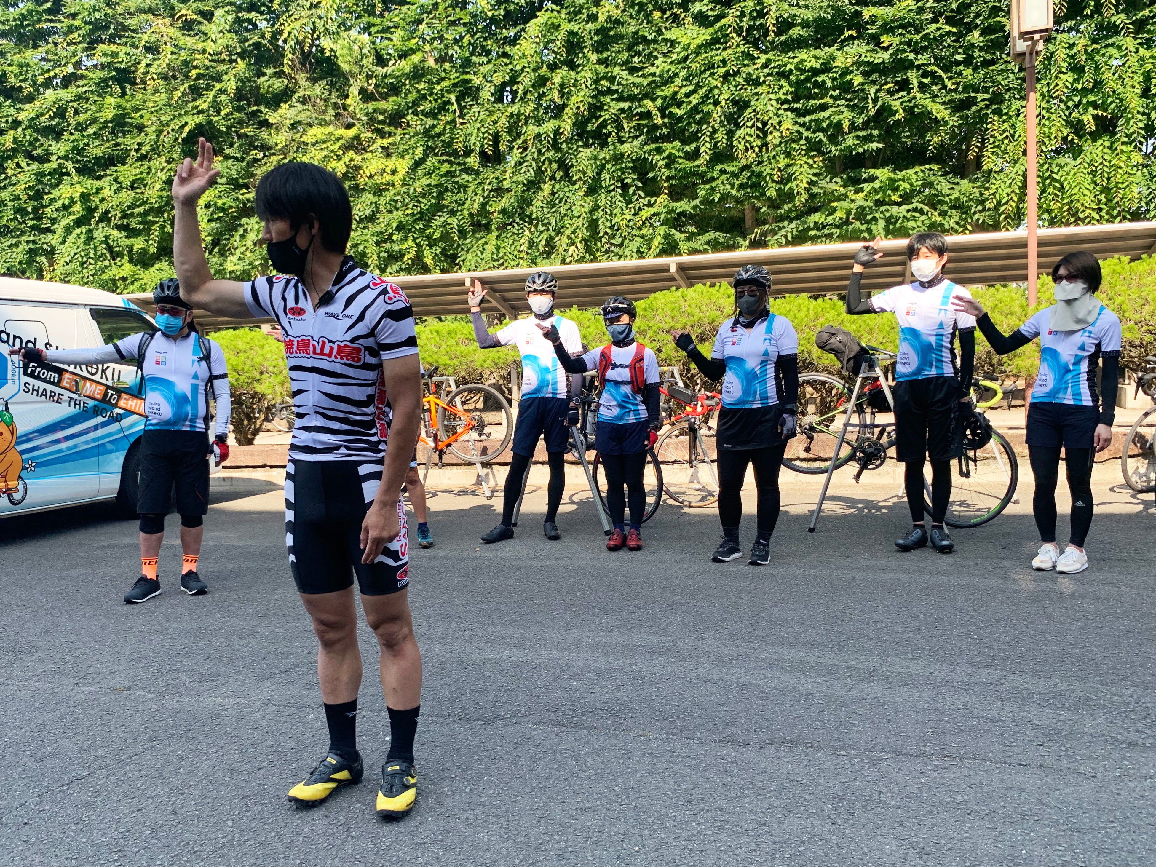 スタート地点の愛媛県庁では、愛媛県在住のサイクリングガイドによる安全講習を実施。参加者全員が安全にゴールできるよう、走行中の注意点、手信号(ハンドサイン)などをレクチャーしていただきました。