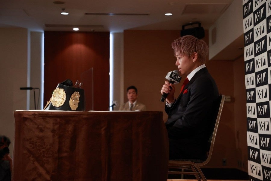 あと、もう1つ報告したいことっていうか、発表させてもらいたいことがあるんですけど、今回負けてしまって、K-1の大将としてK-1を背負わせてもらって、ずっと戦わせてもらって、今回の試合もK-1の代表として戦ったつもりだったんで、そのK-1の代表として負けてしまったということは、僕はもうK-1を背負う資格はないなと思っています。ケジメとしてこのベルトは返上させてもらって、次の世代にバトンタッチしたいなと思っています。