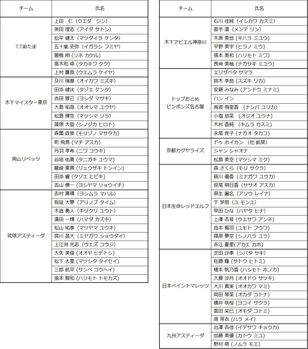 Tリーグでは、2022-2023シーズン 登録完了選手を以下の通りお知らせいたします。