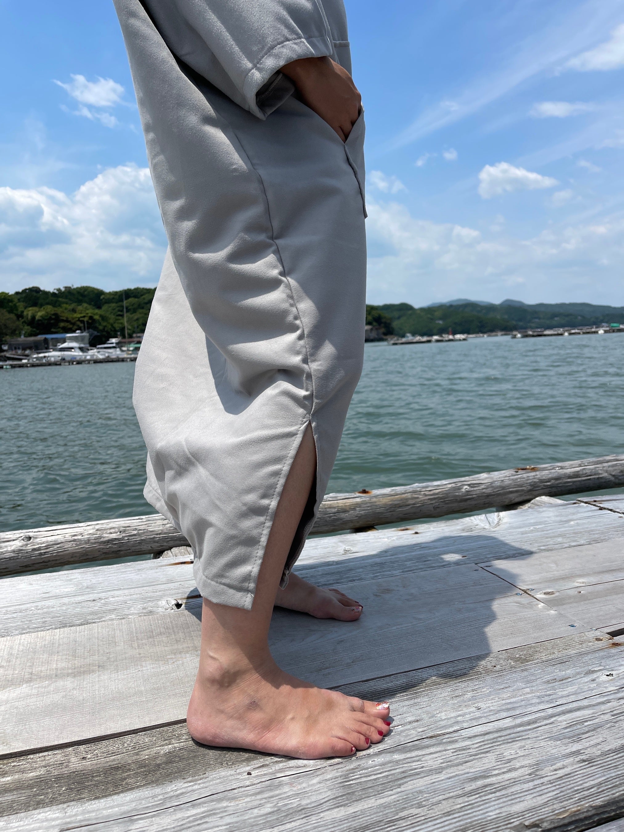 長めの丈でも約20cmのスリットを入れることにより、足元がもたつかず歩きやすい設計になっています。