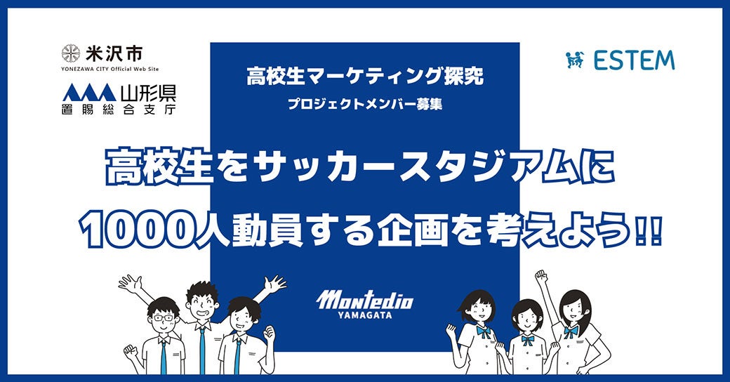 株式会社モンテディオ山形(本社:山形県天童市、代表取締役:相田 健太郎)は、山形県米沢市、山形県置賜総合支庁及び探究教室ESTEMと連携し、高校生をサッカースタジアムに1000人動員する企画を考える『高校生マーケティング探究』を実施いたします。それに伴い、高校生を対象としてプロジェクトメンバーの募集を開始しました。