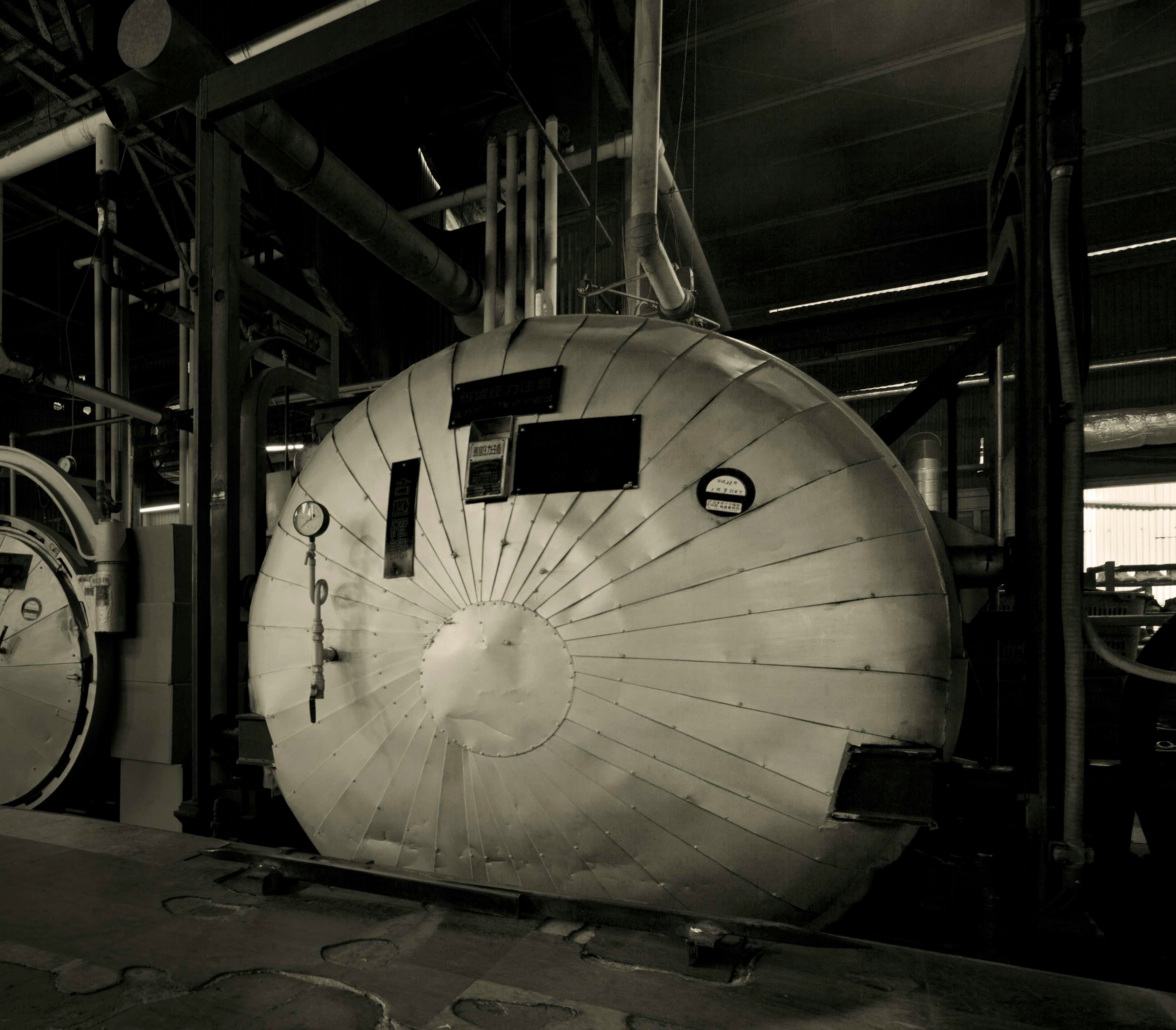 バルカナイズ製法は、靴本体と硫黄を加えたゴム底材を釜に入れ、加熱・加圧をかけて底付けを行う製法です。底がはがれにくく、靴本体の型崩れが少ないといった利点があります。一方で、生産効率の低さから、この製法を採用するメーカーは極めて少なくなっています。