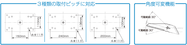 マルチ取付構造の採用で、3種類の取付ピッチに対応。