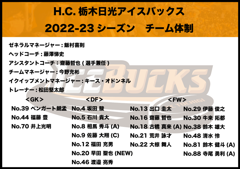 H.C.栃木日光アイスバックスは、2022-23シーズンのチーム体制、スローガンの発表が決定しました。