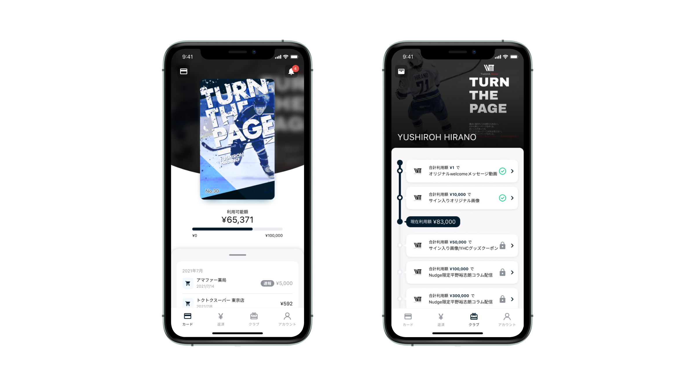 日本におけるチャレンジャーバンクを目指すナッジ株式会社(本社:東京都千代田区、代表取締役社長:沖田 貴史、以下「ナッジ」)は、次世代型クレジットカード「Nudge(ナッジ)」において、6月30日よりプロアイスホッケー選手の平野裕志朗選手を応援する「YUSHIROH HIRANO」クラブが新たにスタートすることをお知らせ致します。