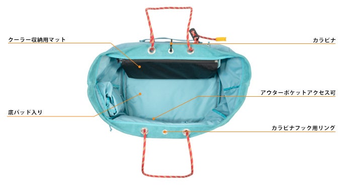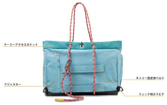 COLDGIRLの設計段階で、私たちは保冷性能はもちろんのこと、アウトドア環境では耐久性も重要な要素と考えました。多くの素材研究とテストを行い、強度と重さを考慮した上で、耐久性の強い帆布生地をベースとし、更にハンドルにクライミングロープを採用し、生地を支える構造にして強靭なバッグに仕上げております。