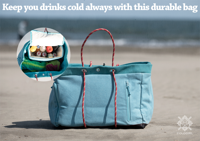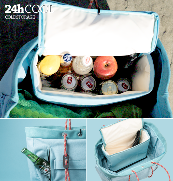 COLDGIRLは、一見普通のトートバッグですが、クーラー専用バッグと同等の最強クラス24時間保冷性能をもったクーラーを装備。厚さ13mmの特殊5層断熱構造により「冷たい」をキープします。