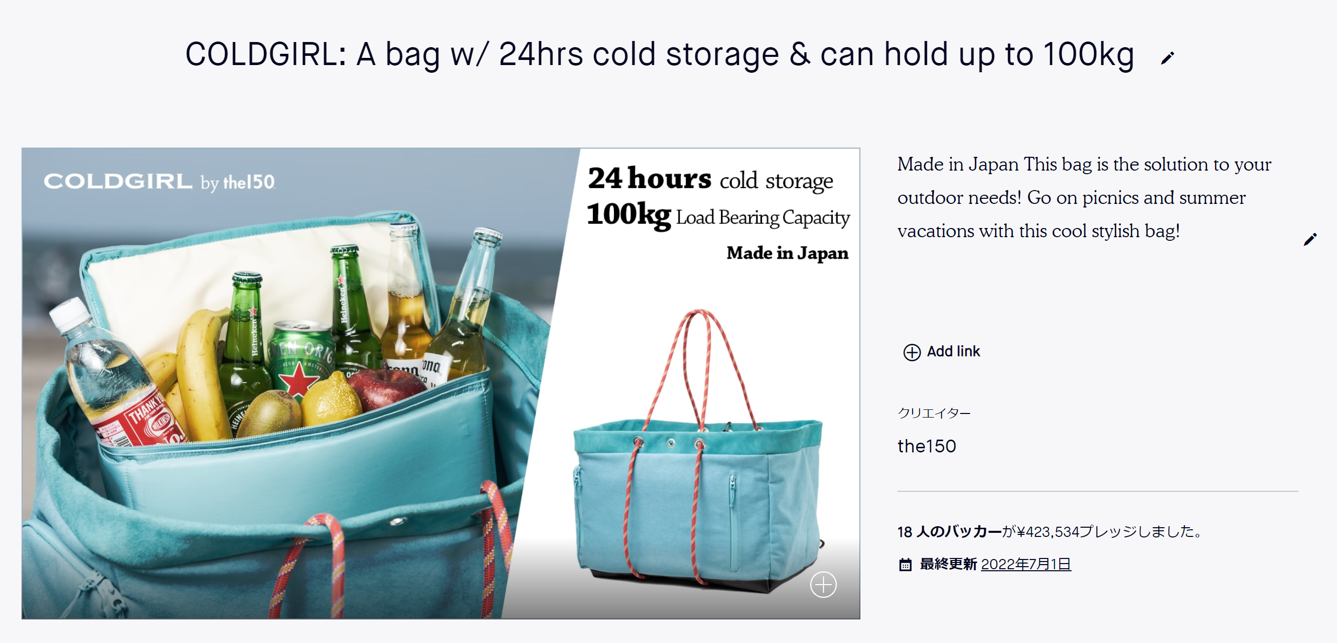 https://www.kickstarter.com/projects/the150/coldgirl-made-in-japan-original-insulation-tote-bag?lang=ja