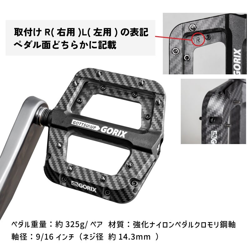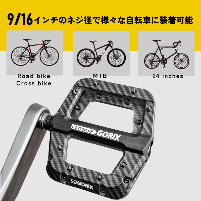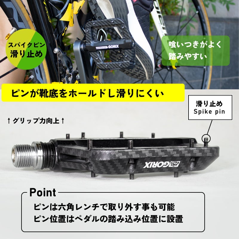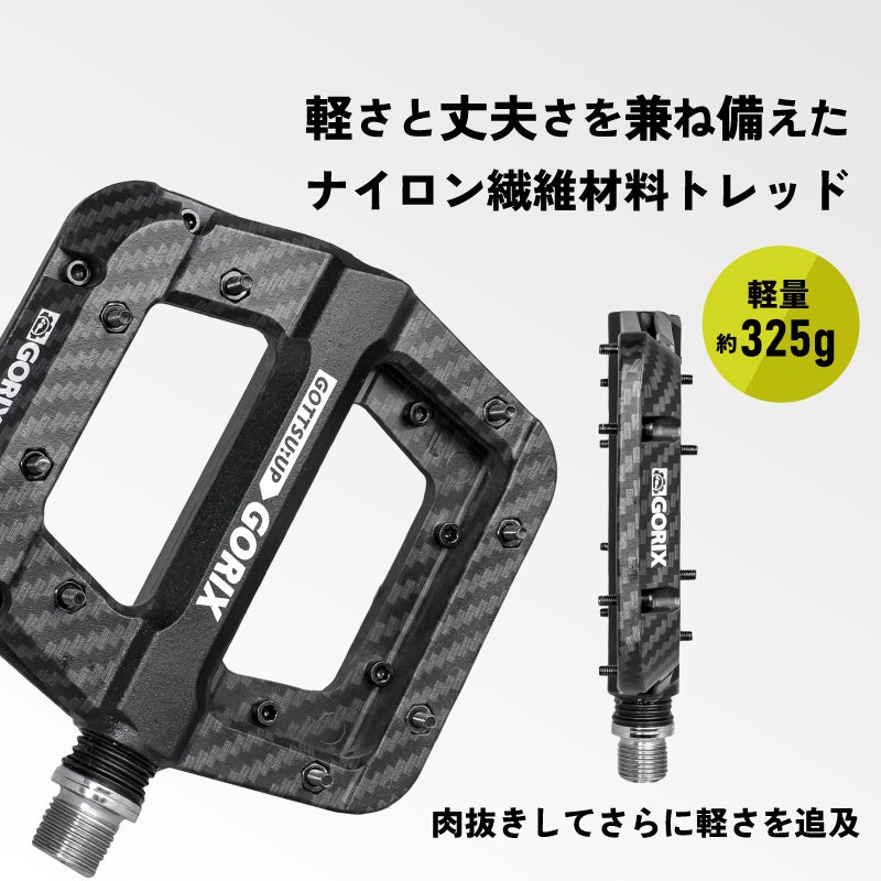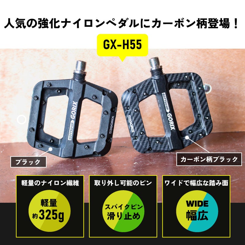 自転車パーツの開発・製造・販売を手掛ける、GORIX株式会社(所在地:大阪市東淀川区瑞光3-9-29、代表取締役:長野明)の自転車パーツブランド「GORIX」から新商品の「自転車フラットペダル(GX-H55 カーボン柄ブラック) 」が発売されました。
