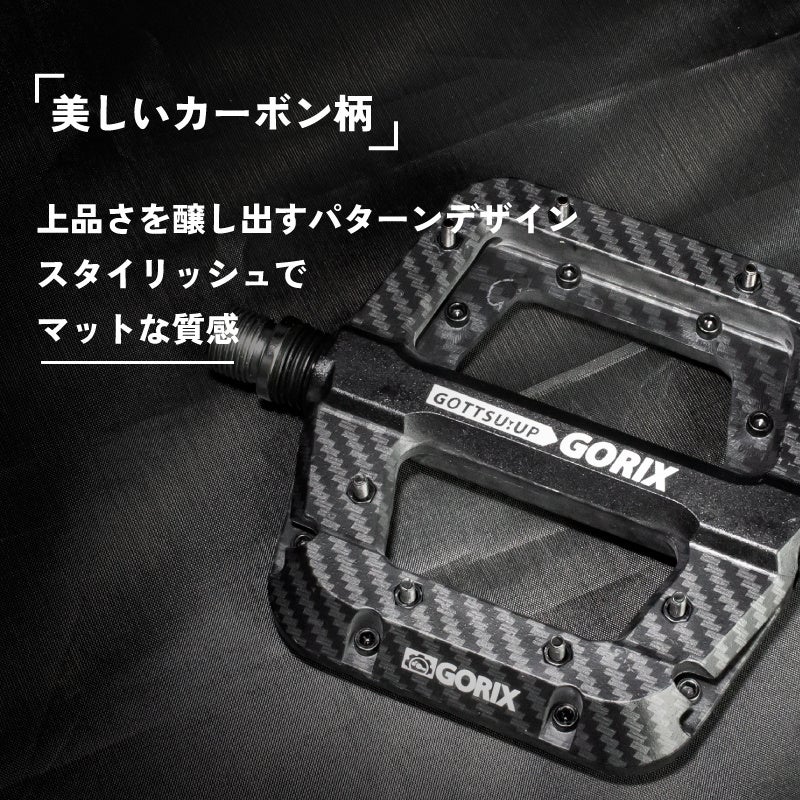 自転車パーツブランド「GORIX」の新商品の「自転車フラットペダル(GX-H55 カーボン柄ブラック) 」は