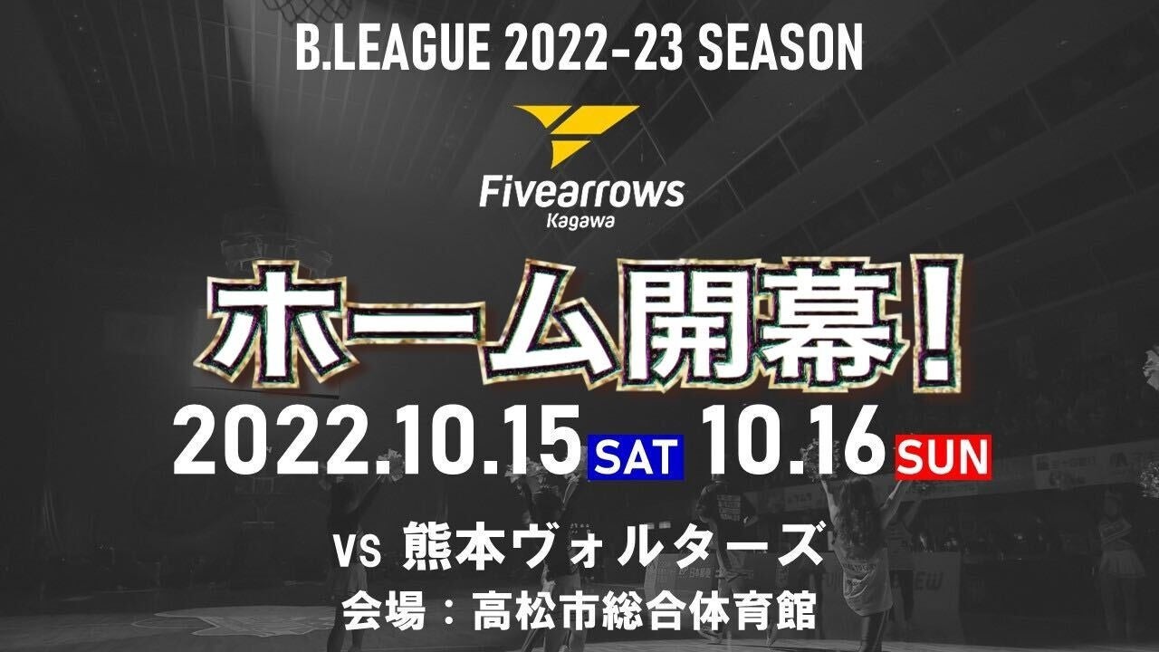 このたび、B.LEAGUE 2022-23シーズンの香川ファイブアローズ ホーム開幕節の開催情報が決定しましたので、お知らせいたします。
