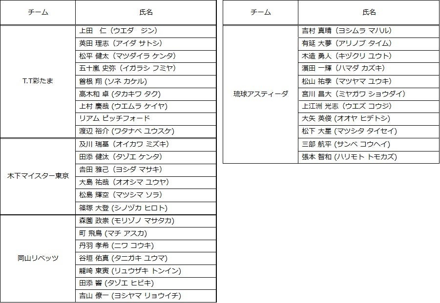 【2022年7月6日付までの登録完了選手(男子)】
