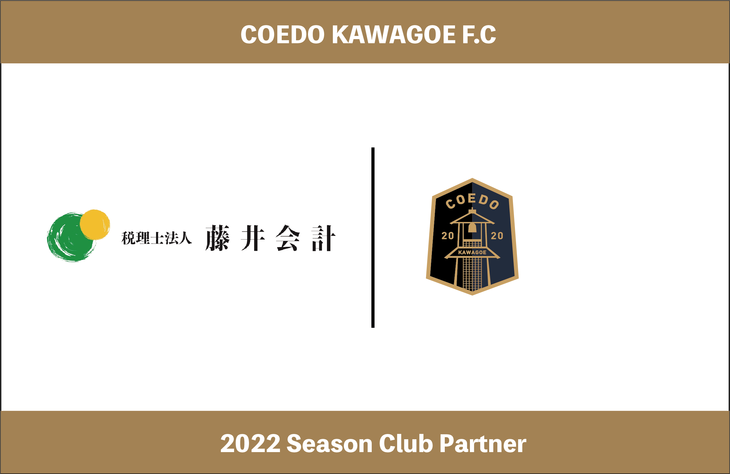 COEDO KAWAGOE F.Cを運営するCOEDO KAWAGOE F.C株式会社(埼玉県川越市、代表取締役 有田和生)は、埼玉県川越市で3代続く老舗会計事務所税理士法人藤井会計(埼玉県川越市、所長 藤井 靖)とクラブパートナー契約を締結したことを発表いたします。