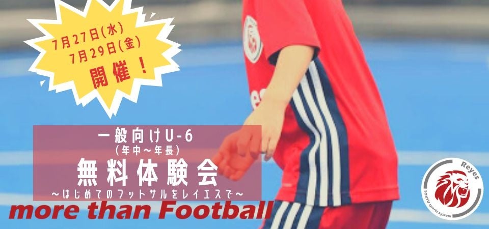 東急Sレイエス フットボールスクール 池袋では、7月27日(水)・29日(金)にアディダスフットサルパーク池袋にて、年中・年長を対象とした初めてのお子様でも安心して体験できる『フットサル無料体験会』を開催いたします。これからフットボールを始めたいお子様にはお勧めですので、ぜひこの機会にご参加ください。